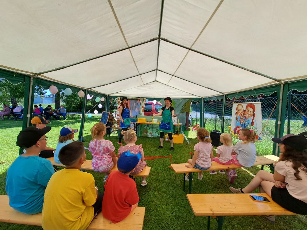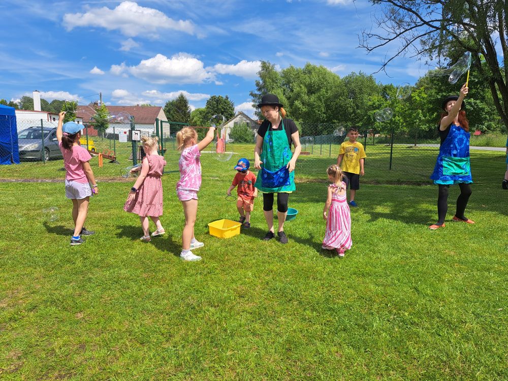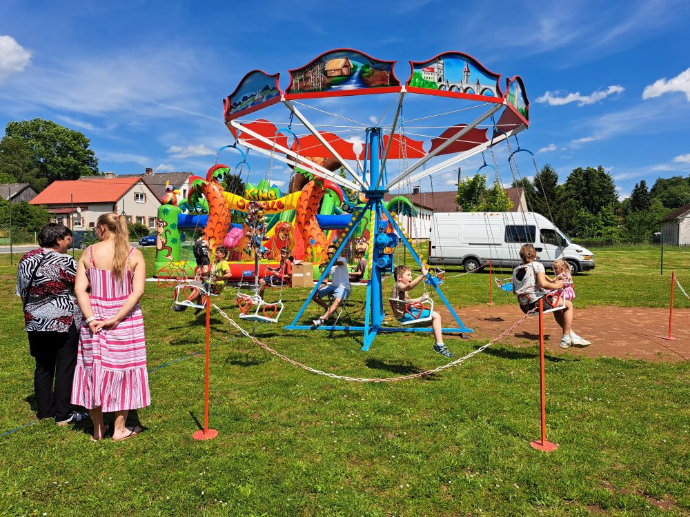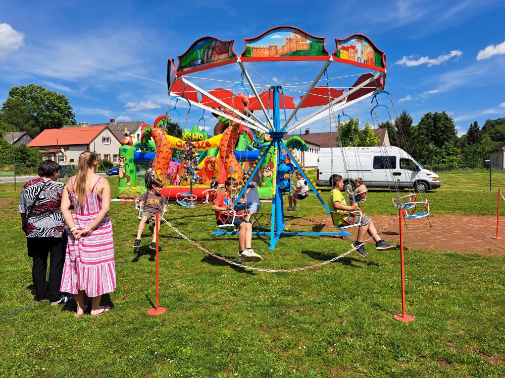 Dětský den se uksutečnil dne 8. 6. 2024, pro děti byl připravený bohatý kulturní program a zabávné atrakce. Foto obec Hošťka.